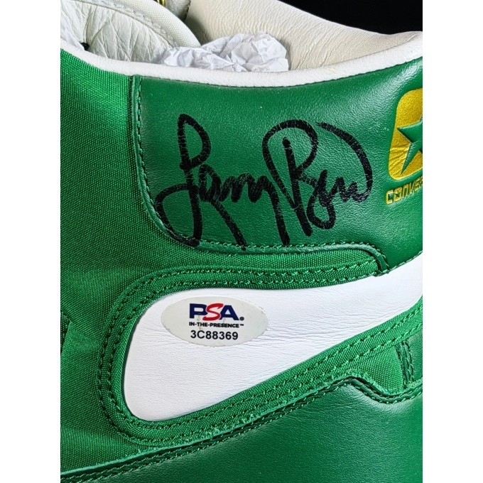 Ícone supremo do basquete americano, Larry Bird personifica competitividade, inteligência de jogo e uma frieza lendária nos momentos decisivos. Três vezes campeão da NBA, MVP múltiplo e eterno astro do Boston Celtics, Bird redefiniu o conceito de excelência ao unir técnica impecável, liderança natural e uma mentalidade vencedora que marcou época. Seu legado transcende números. Ele é a personificação do basquete jogado com alma, precisão e respeito pelo jogo. Este tênis autografado por Larry Bird é uma peça que carrega diretamente essa grandeza. Mais do que um item esportivo, é um símbolo da era dourada da NBA, representando o impacto cultural e competitivo de um dos maiores atletas que já pisaram em quadra. A assinatura do lendário camisa 33 transforma o tênis em um artefato histórico, raro e desejado por colecionadores do mundo inteiro. Um item de coleção que une legado, autenticidade e reverência ao basquete. Larry Bird, a mente brilhante e o instinto campeão que moldaram gerações.