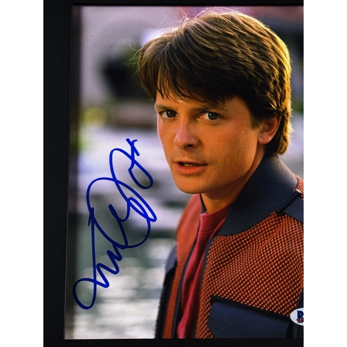 Fotografia original de cena do clássico Back to the Future, autografada por Michael J. Fox, eternizado no papel de Marty McFly.