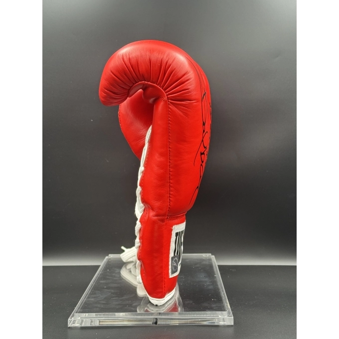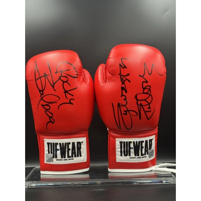 Luva vermelha da Tuf-wear, autografada por Sylvester Stallone na Manopla Direita e, na Manopla Esquerda, como seu Pseudônimo artístico Rocky Balboa.