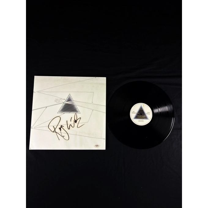 Roger Waters, principal arquiteto conceitual por trás do álbum, foi o responsável pela espinha dorsal temática que sustenta The Dark Side of the Moon. Sua assinatura em um vinil ligado a essa obra conecta o item diretamente à mente criativa que estruturou o conceito narrativo do disco. No campo do colecionismo musical, autógrafos de membros centrais do Pink Floyd associados especificamente a este título ocupam posição distinta, dada a permanência do álbum nas listas de vendas históricas e sua relevância contínua no mercado de vinil.