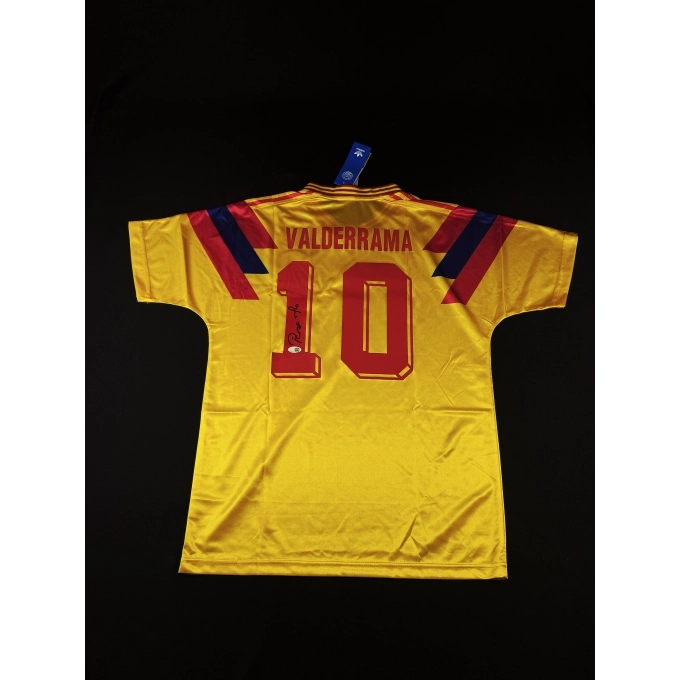 Esta camiseta oficial da Seleção da Colômbia, autografada pessoalmente por Valderrama, carrega o espírito de um dos momentos mais emocionantes da história do futebol sul-americano. Valderrama, com sua habilidade única e visão de jogo incomparável, foi o líder da seleção colombiana nos anos 90, levando o time a conquistar grandes vitórias e a figurar entre as principais seleções do mundo.