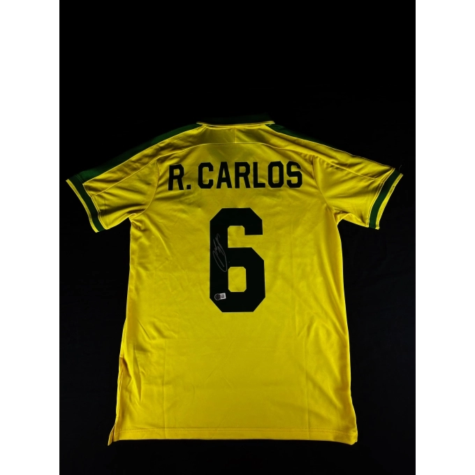 Esta camisa oficial da Seleção Brasileira traz a assinatura autêntica de Roberto Carlos, um dos maiores defensores da história do futebol. Um símbolo da era de ouro da “Amarelinha”, eternizada por craques que redefiniram o esporte.